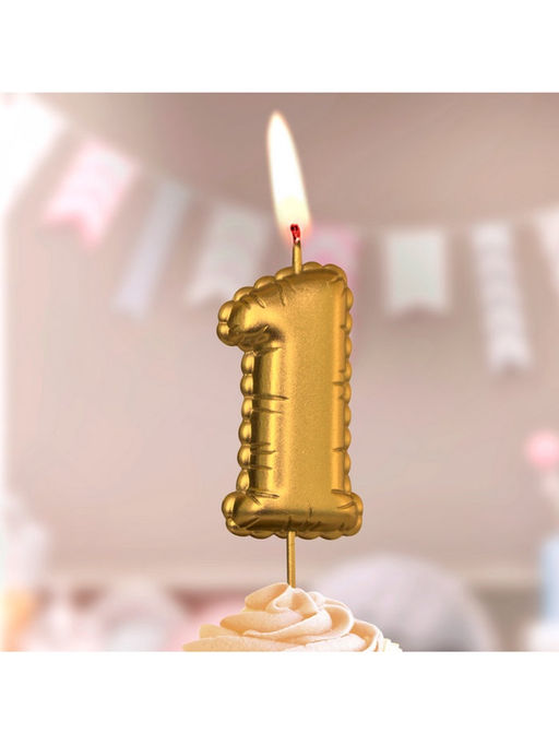 • Цена за 3 шт. Свеча в торт на шпажке «Воздушная цифра 1», золото
