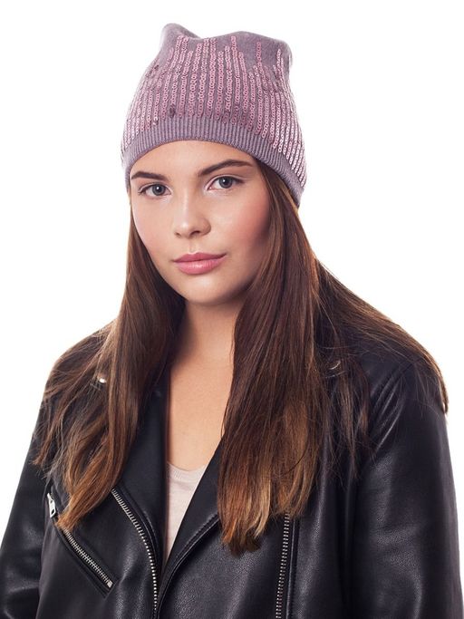 Однотонная шапка с пайетками для настоящих модниц. Это уже не спортивный стиль и не лаконичная однотонная классика. Это молодежный вариант, который согреет Вас на осенних прогулках и не даст почувствовать себя неловко. Вертикальные ассиметричные ряды пайеток игриво переливаются под солнечными лучами и в свете уличных фонарей и ярких вывесок для любительниц вечерних прогулок.