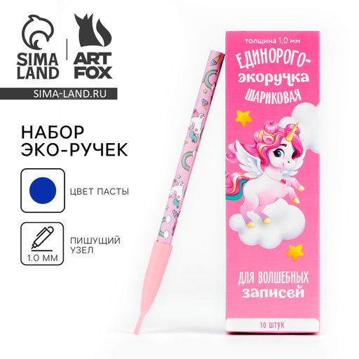 Цена за 10 шт. Ручка-эко шариковая, синяя паста 1.0 мм «Единорог»
