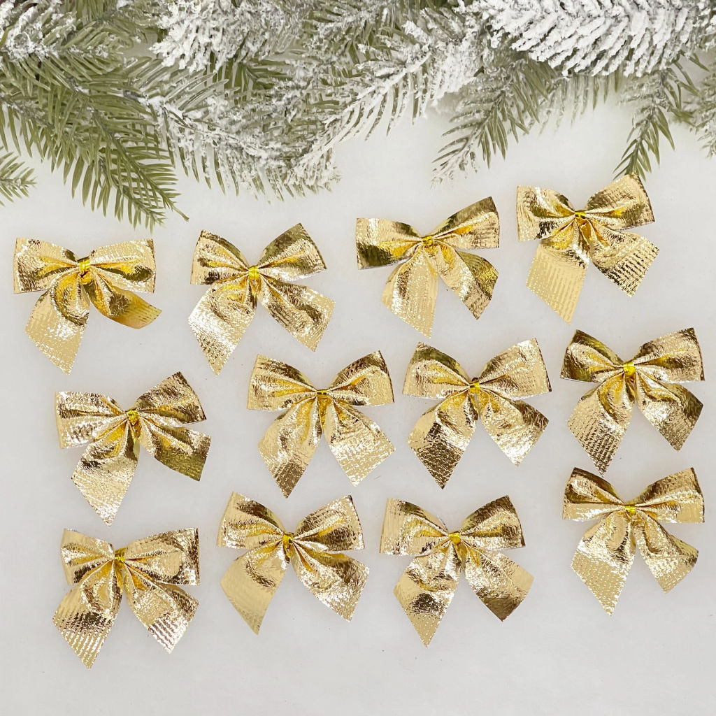 Цена за 6 шт. Бант на ёлку "Золотой шик" 6 см (набор 12 шт)