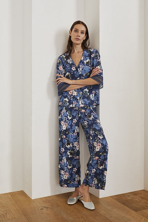 Женская пижамная рубашка классического кроя. Модель прекрасно держит форму, украшена элегантными манжетами из нежного кружева, застегивается на пуговицы. Безупречный крой и плотность ткани позволяют использовать рубашку в домашнем образе и чувствовать себя женственно и привлекательно.­