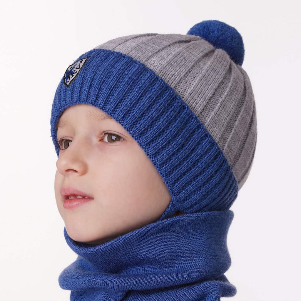 Однослойная двухцветная шапочка (без подклада) с отворотом и помпоном среднего размера. Отлично тянется. Сбоку пришит стильный фирменный лейбл. Аккуратные удобные завязки без узлов и наконечников (при желании их легко отсоединить). Шапочка подойдет на осень/весну с демисезонной одеждой.