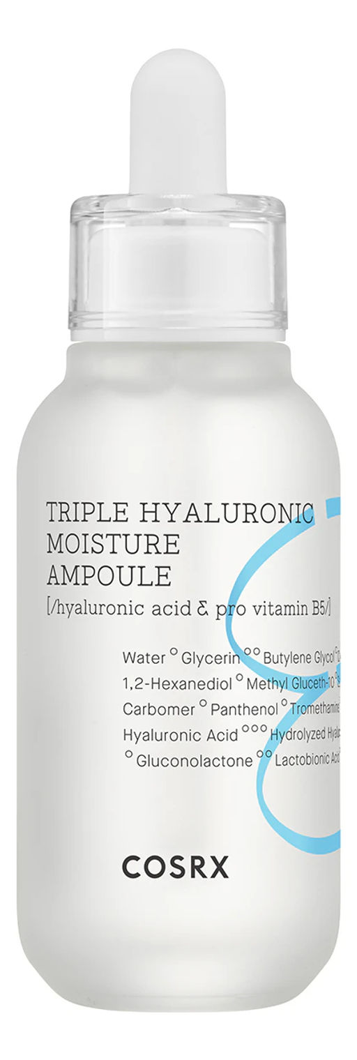 Для интенсивного увлажнения, восстановления природной свежести и красоты сухой, увядающей, обезвоженной кожи, специалисты COSRX предлагают использовать сыворотку для лица Triple Hyaluronic Moisture Ampoule.