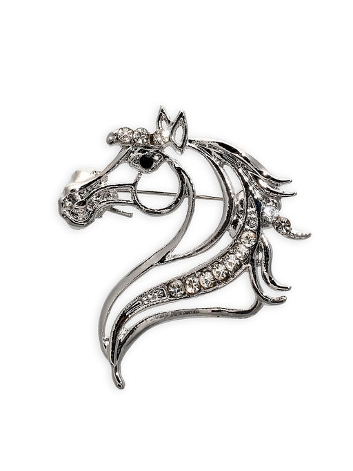 • Брошь "Лошадь" изящная, цвет белый в серебре