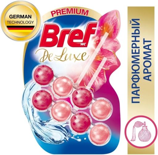 - Средство Bref DeLuxe содержит парфюмерную композицию, которая обеспечивает элегантный освежающий аромат.