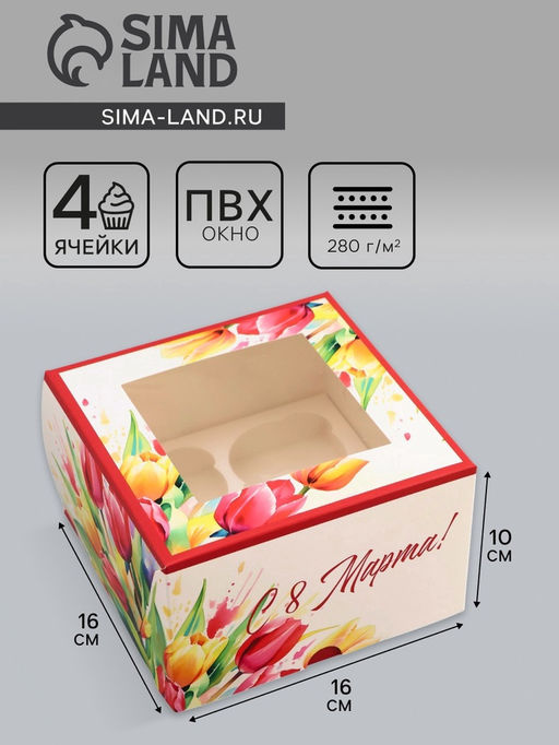 • Цена за 5 шт. Коробка под 4 капкейка с окном, Самой прекрасной, 16?16?10 см