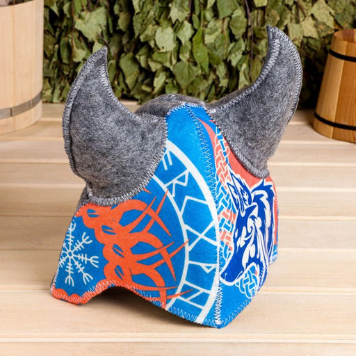 • Шапка для бани и сауны «Викинг с волком», войлок, синий, «Добропаровъ»
