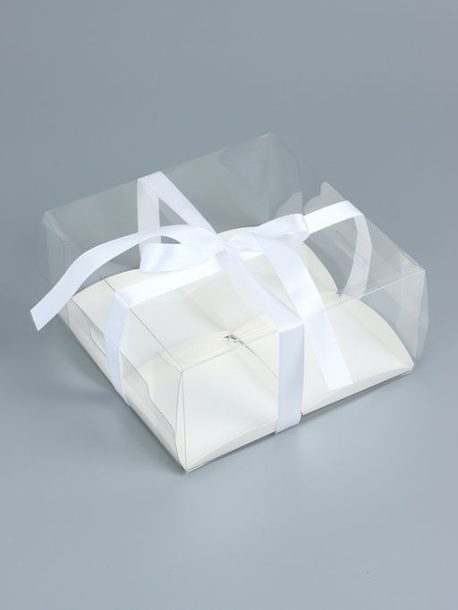 Коробка для пирожных 4 штуки, белая, 20×20×10 см