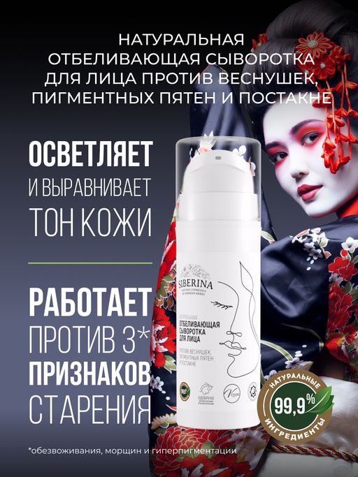 Хотите избавиться от веснушек, пигментных пятен и постакне? На помощь придет отбеливающая серия косметики от SIBERINA - она преобразит вашу кожу, сделает ее свежей, чистой, молодой и сияющей.