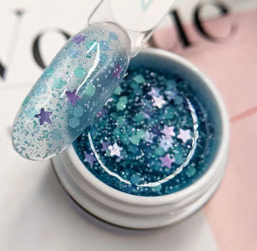 Данные гель-лаки возможно наносить в растяжку на различные материалы, а также использовать как самостоятельное покрытие. Все частички равномерно распределяются по ногтевой пластине, создавая невероятный дизайн.