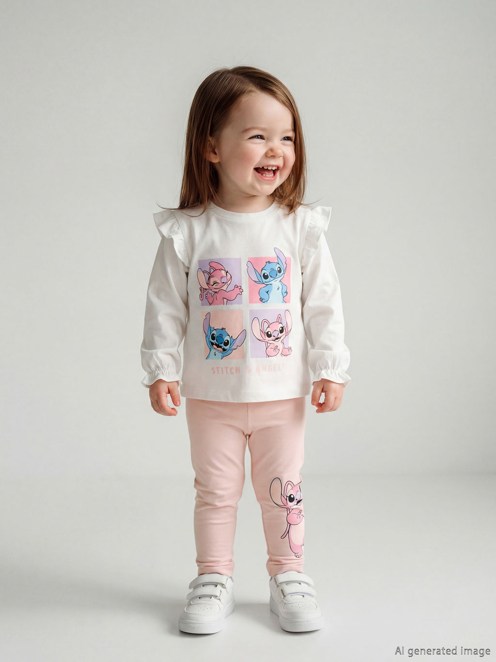 Stitch & Angel Bask?l? K?z Bebek Ti??rt ve Tayt