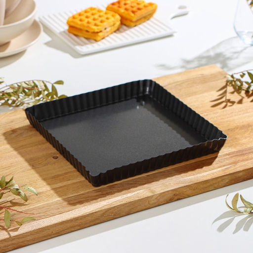 • Форма для выпечки Доляна «Жаклин. Рифлёный квадрат», 21×2,5 см, съёмное дно, антипригарное покрытие, цвет чёрный