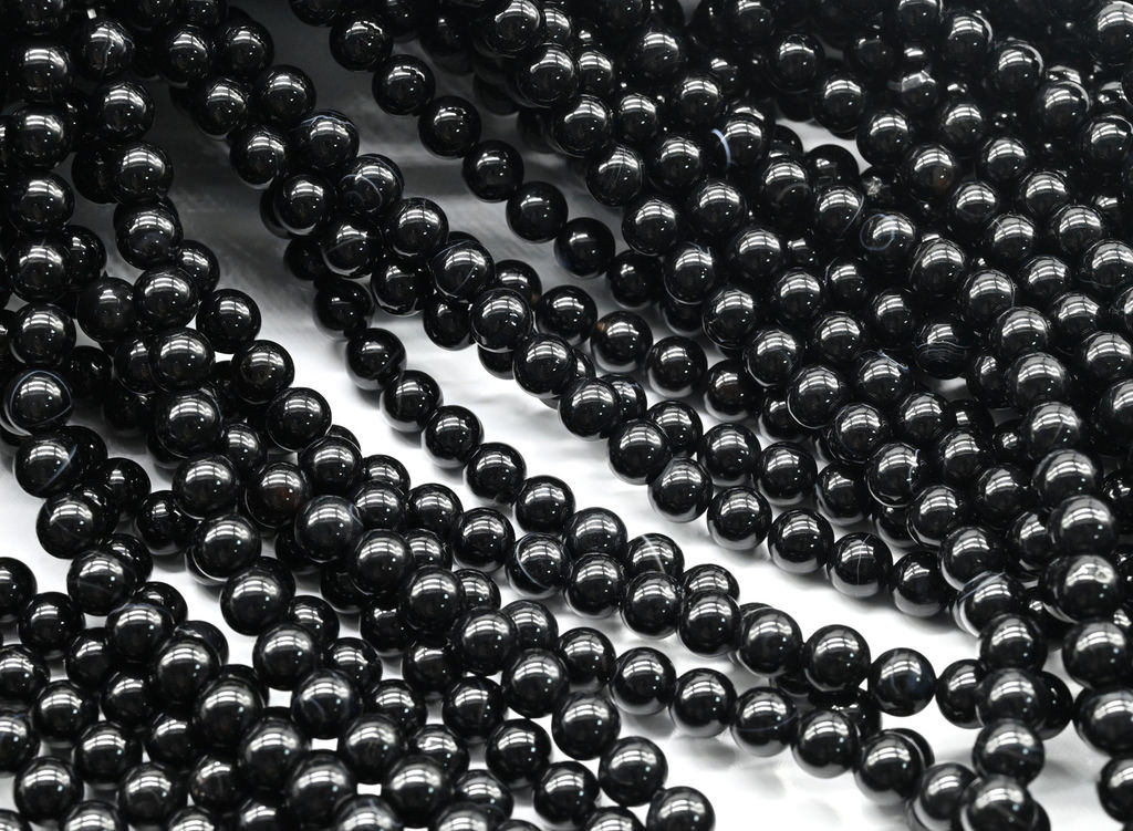 Бусины из агата черного шарик 6мм, 38см, 63 бусины Радуга камня