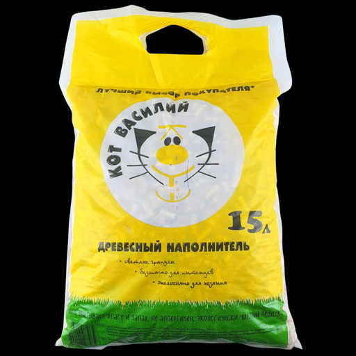 Наполнитель для кошек 15л древесный КОТ василий - это качественный и экологически чистый продукт, который обеспечит комфорт и гигиену вашего питомца.