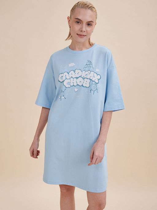 Стильное женское летнее платье футболка длиной до колена. Трикотажное платье оверсайз прямого кроя с коротким рукавом. Однотонное платье-футболка с принтом базовый элемент женского гардероба. Повседневное платье свободного кроя подойдет для любой фигуры. В составе ткани изделия преобладает высококачественный хлопок платье мягкое и отлично пропускает воздух, позволяя коже дышать. Эластан помогает модели надолго сохранить первоначальную форму. Милый принт в виде сладостей с надписью актуальным шрифтом, напоминающим облака: "Сладких снов". Принт эластичный и прочный, отлично переносит многочисленные стирки. В линейке представлены следующие размеры: XS (42), S (44), M (46), L (48), XL (50). Просторное платье в спортивном стиле подходит как женщинам, так и девушкам, девочкам-подросткам. Модель представлена в двух трендовых цветах: голубом и розовом. Свободное платье оверсайз идеально для носки дома, комфортного сна, пижамной вечеринки. Платье-майка подходит для повседневного летнего гардероба, прогулок, отдыха, пляжа. А также модель удобна для беременных. Женское платье-футболка чудесный подарок для мамы, сестры или подруги на любой праздник. Выбирайте нужный размер по таблице размеров на фото. Цвет товара на экране вашего устройства может отличаться от цвета изделия вживую.