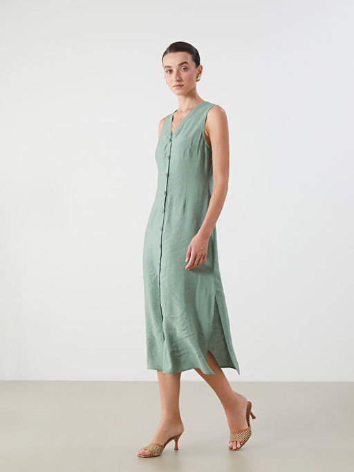 • V Yaka A Kesim Modal Kar???ml? Elbise