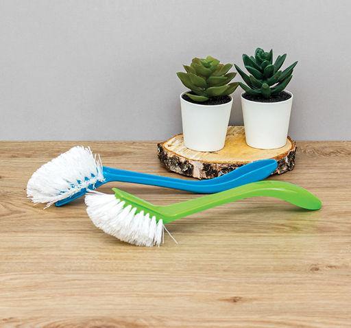 Щётки для мытья посуды прекрасно отмывают даже сложные загрязнения, имеют широкую ручку. Щетина достаточно жёсткая, чтобы держать форму, в тоже время не царапает поверхность посуды. Имеет отверстие на конце ручки для удобства хранения.