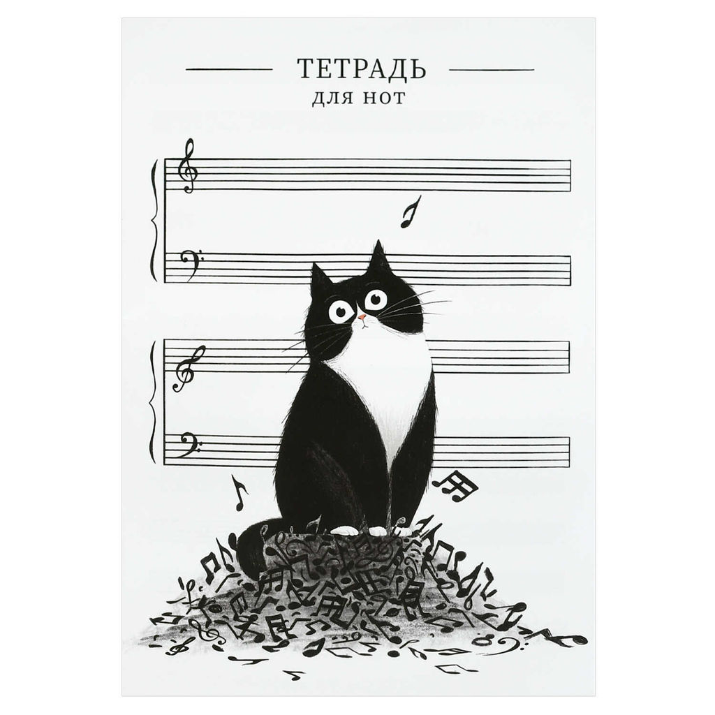 Тетрадь для нот 8 л. арт. 73217 КОТ И НОТЫ /А4, белый офсет, мягкий переплёт (2 скобы), облож.- мелованная бумага 130 г/м?,