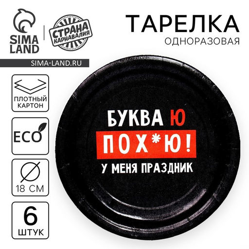 • Тарелка одноразовая бумажная "Буква Ю", набор 6 шт, 18 см