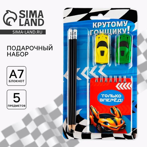 • Подарочный набор канцелярский, ластики 2 шт., блокнот, карандаши «Крутому гонщику»