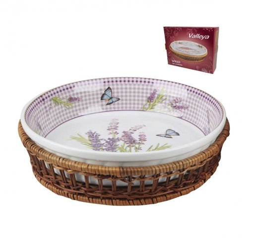 Блюдо керамич. 11" кругл. в плетенке "Прованс", арт. 1796-545-11 (099396) VALLEYA