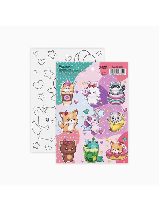 • Цена за 10 шт. Наклейки детские бумажные «Милые персонажи», c раскраской, 10×14 см