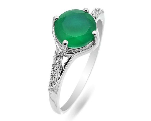 Кольцо, арт.640809 Серебро Серебро 925, р. 17, 1,6 гр., зеленый агат­