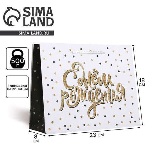 Плотность, г/м²: 128. Допустимый вес вложения, г: 500. Тематика: Надписи, цифры, буквы. Тематика праздника: День рождения. Отделка пакета: Ламинация. Вид ручки: Ручка-шнур. Особенности: Без особенностей. Бесплатная доставка: Да. Наша разработка: Да. Размеры товара: 8/18/23. Примечание: Пакеты изготовлены из тонкой бумаги, поэтому на них могут появиться вмятины. Такая особенность не является браком..