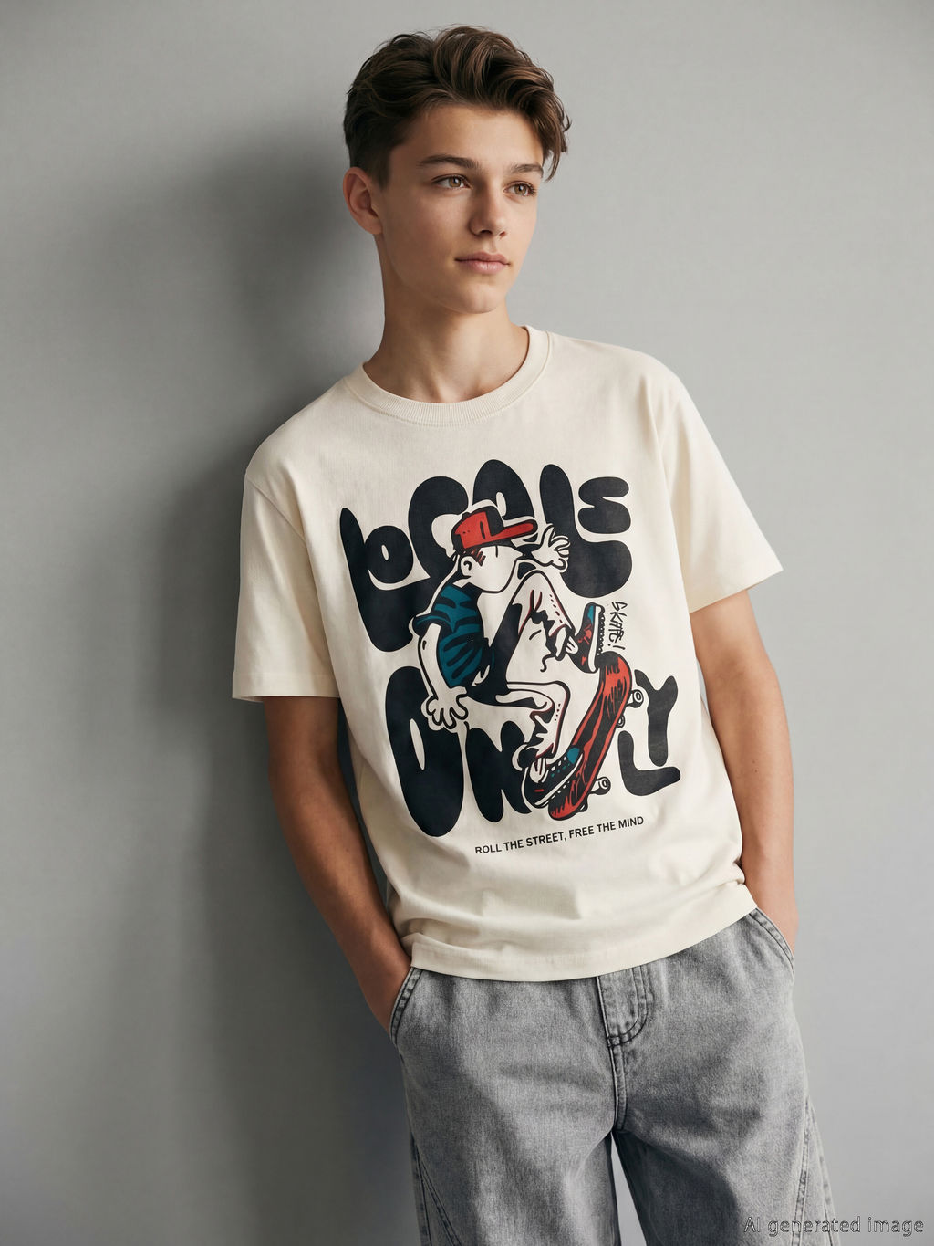 • Bisiklet Yaka Bask?l? Erkek ?ocuk Ti??rt