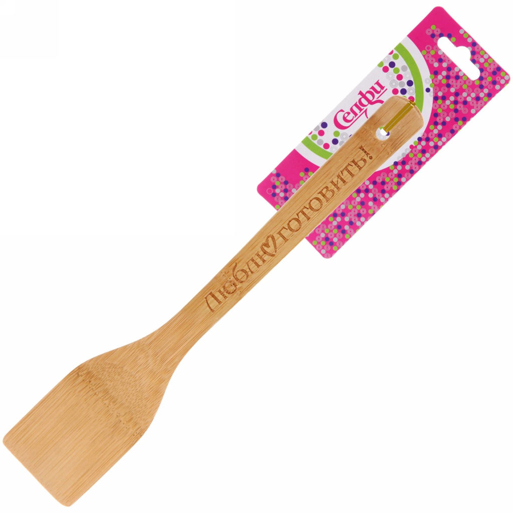 • Цена за 5 шт. Лопатка бамбуковая 30*6см "Люблю готовить" Селфи