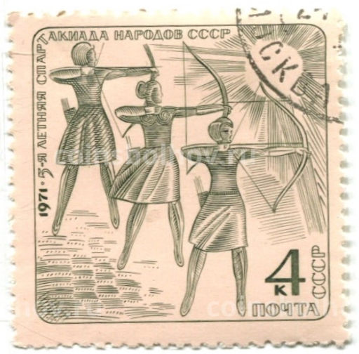 Марка 5-я летняя спартакиада народов СССР (стрельба из лука) 1971 год