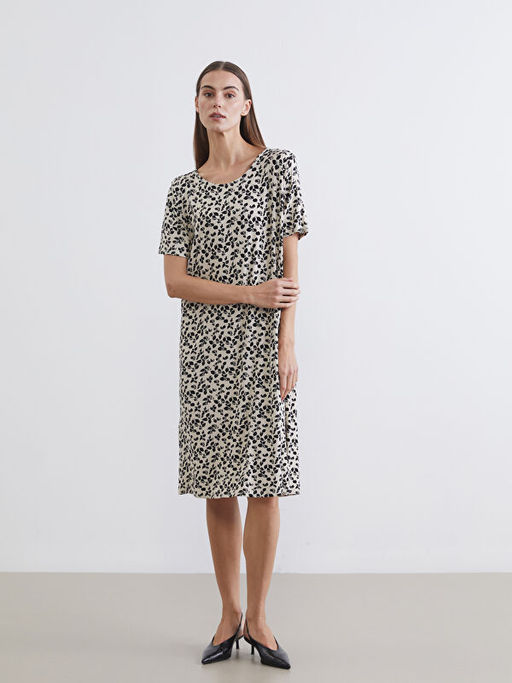 • Bisiklet Yaka Desenli Elbise