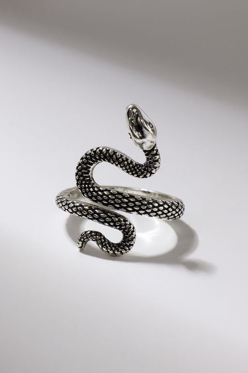 • Кольцо «Змея» изогнутая, цвет чернёное серебро, безразмерное
