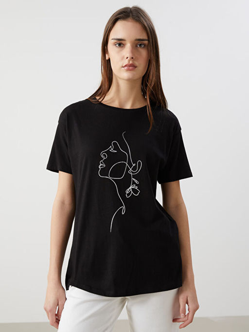 Bisiklet Yaka Bask?l? Kad?n Ti??rt