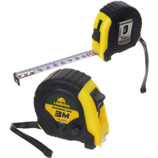 Рулетка Lamboss три фиксатора обрезиненный корпус 3М. Строительная рулетка - инструмент, который пригодится как в быту, так и в профессиональной деятельности. С помощью нее можно произвести точные замеры длины или расстояния между объектами во время строительных или ремонтных работ. Представляет собой гибкую длинную полоску с нанесенной шкалой измерения. Лента наматывается на небольшую ось, которая расположена внутри корпуса.­
