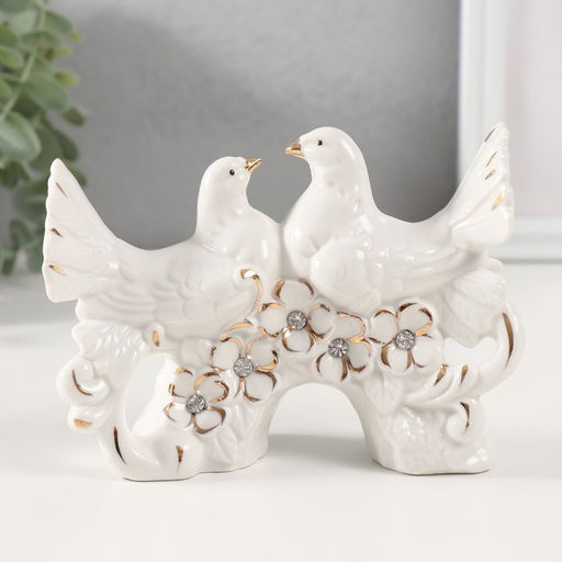 Фигурка керамика «Белые голуби на цветочном дереве», с золотом, стразы