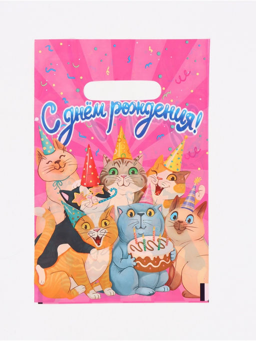 • Цена за 50 шт. Подарочный пакет, полиэтиленовый, с вырубной ручкой, «С Днём рождения»,  20 х 30 см