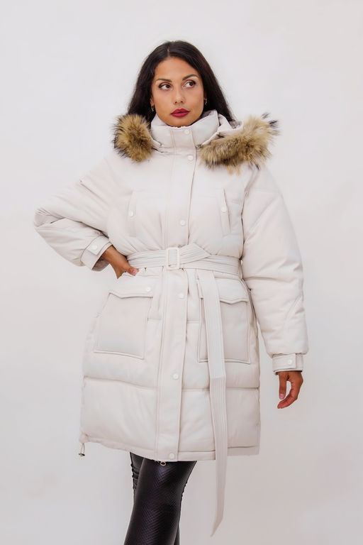 Зимняя парка с капюшоном — это идеальное сочетание стиля и функциональности, которое подарит вам тепло, комфорт и модный вид в холодное время года. Данная модель разработана с акцентом на современные тенденции моды и практичность, соответствуя всем требованиям современного гардероба. Парка длиной до колена обладает элегантным и женственным силуэтом, который отлично подчеркивает вашу фигуру. Накладной пояс в сочетании с кулиской по талии позволяет регулировать посадку, создавая гармоничные линии, которые будут выгодно смотреться в любом образе. Эта модель станет идеальным выбором как для повседневной носки, так и для более торжественных мероприятий. Для вашего удобства опушка на капюшоне легко отстегивается, так же как и сам капюшон — это позволяет изменять образ в зависимости от настроения и погодных условий. Застежка на молнии с планкой защищает от снега и ветра, обеспечивая надежную защиту. Парка оснащена четырьмя карманами — два из них накладные, большие, с клапанами на кнопках, позволяющие хранить все необходимые мелочи под рукой, Каждое отделение застегивается, что гарантирует сохранность вашего имущества. Дополнительные элементы, такие как кулиска внутри на поясе с фиксаторами и возможность затянуть низ парки с помощью фиксаторов, делают модель еще более универсальной: вы сами можете настроить её под свои предпочтения. Эта зимняя парка станет незаменимым элементом вашего гардероба, прекрасно сочетая в себе уют, стиль и практичность. Создайте неповторимый образ, в котором вам будет комфортно и стильно, независимо от условий погоды.