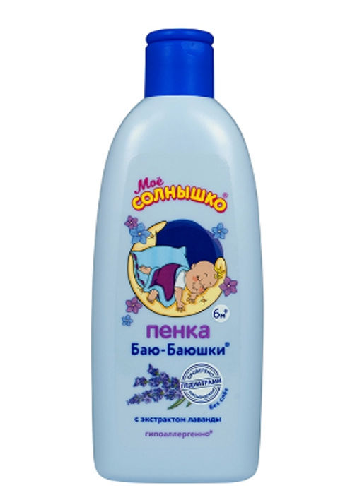Пенка для купания Баю-Баюшки с экстрактом лаванды Моё Солнышко 200 мл. Мягко очищает кожу ребенка и создает нежную пену во время купания. Особый вечерний ритуал и волшебный аромат лаванды создают приятную атмосферу и настраивают малыша на спокойный и крепкий сон. Пенка мягко и бережно ухаживает за кожей малыша. Подходит для ежедневного использования. Подходит для малышей с 6 месяцев. Не щиплет глазки. Гипоаллергенно. Формула создана для сведения к минимуму риска возникновения аллергической реакции в случае индивидуальной непереносимости ингредиентов состава.