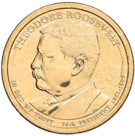 • Монета 1 доллар 2013 года (D) США 26-й президент США Теодор Рузвельт