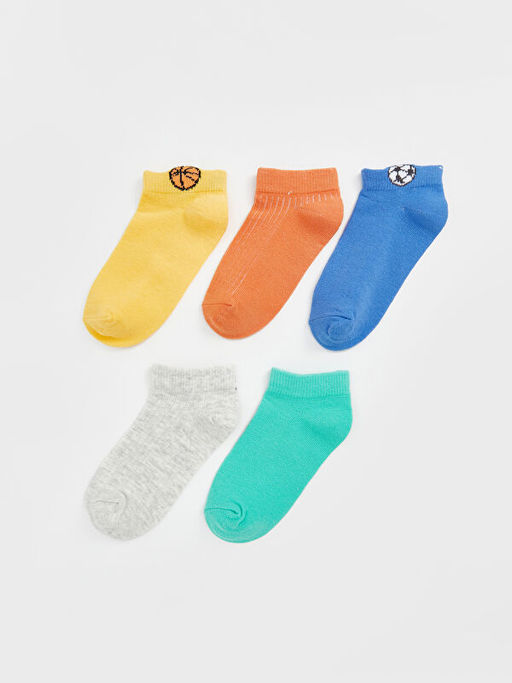 Bask?l? Erkek Bebek Patik ?orap 5li