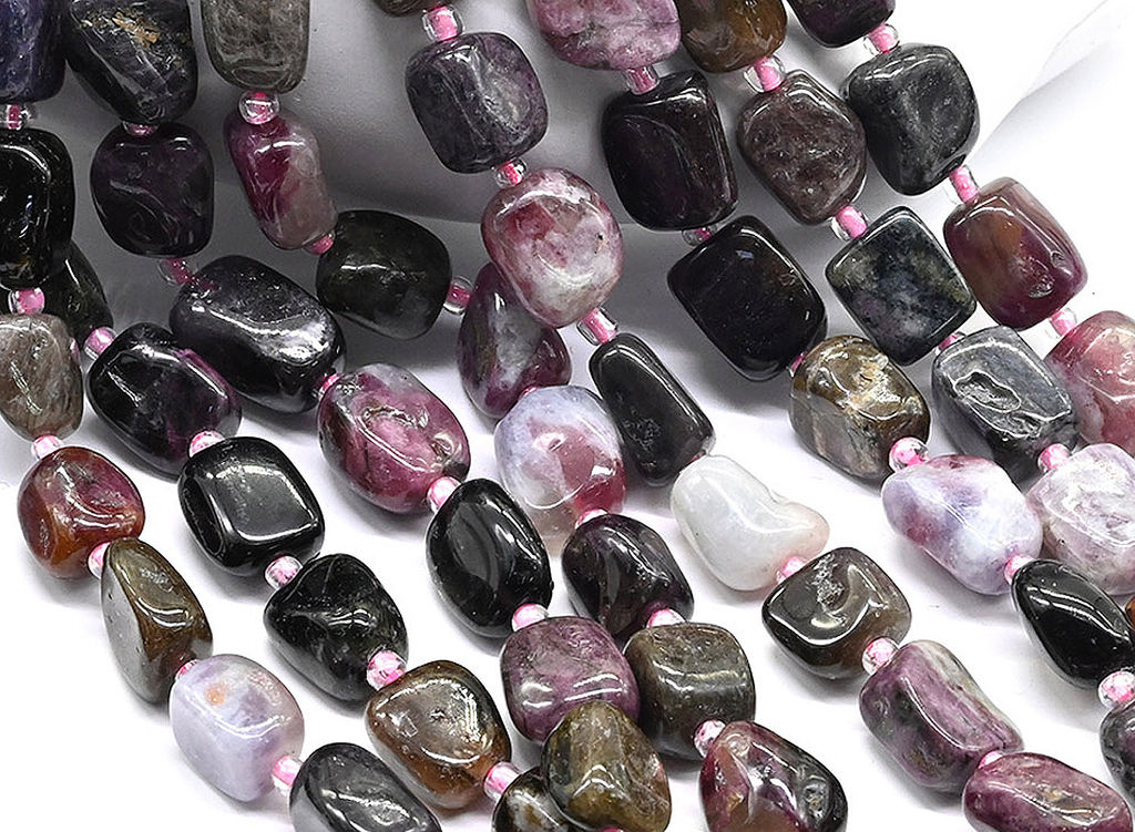 Бусины из турмалина галтовка 8*12мм, 39см, 29 бусин Радуга камня