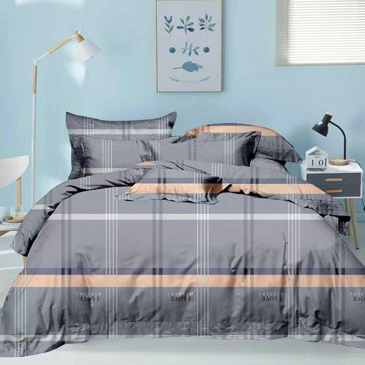 Постельное белье, комплект 2-х спальный "Клетка на сером", 4 предмета: пододеяльник 175х215см, евро-простыня 220х240см, 2 наволочки 70х70см с клапаном-запахом, микрофибра 80г/м2, упаковка "классическая" ПВХ 32х41см, "Домашняя мода" (Россия)