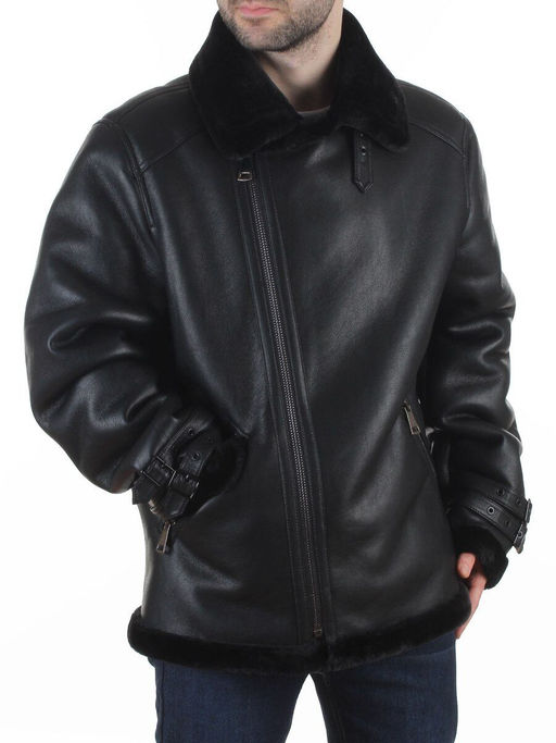 • 506186530 BLACK Куртка мужская зимняя "Пилот" (искусственная кожа, искусственный мех)
