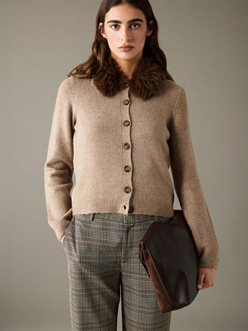 • ??kar?labilir K?rk Yaka Kad?n Triko H?rka