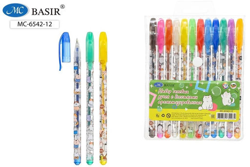 • Набор ручек гелевых "Коты" 12цв. (MC-6542-12) с блестками