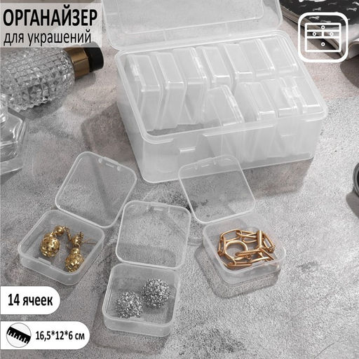 Упростите процесс подбора украшений с функциональным органайзером, рассчитанным на четырнадцать отделов. Современный дизайн и прозрачный корпус делают его незаменимым помощником в хранении колец, серег и кулонов, обеспечивая полный контроль над каждым элементом коллекции. Зачем нужен такой органайзер? * Оптимизация пространства: прямоугольная форма позволяет компактно разместить органайзер на письменном столе или туалетном столике, экономя пространство и оставляя свободным максимум площади. * Противодействие окислению: специальные ячейки защищают изделия от воздействия кислорода, предупреждая потускнение металлов и камней. * Быстрое извлечение нужных предметов: прозрачные стенки позволяют видеть содержимое, упрощая выбор нужного украшения. * Небольшие габариты: высота всего шесть сантиметров и вместительность в шестнадцать с половиной сантиметров по длине предоставляют достаточно места для большинства видов женских украшений. Оптимизируйте управление личной коллекцией, храня украшения в полном порядке и доступности. Комплектация * Подставка для украшений 1 шт. Дополнительно Изысканный аксессуар для демонстрации ваших украшений Практичность, эстетика и гармония в вашем интерьере. Вы можете кликнуть на фото и перейти в категорию товара Керамическая подставка для украшений122 Стол с зеркалом и украшениями122 Подставка для браслетов122 Стол с фурнитурой и украшениями на подставках122