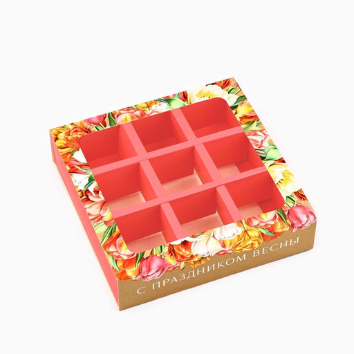 • Цена за 5 шт. Коробка под 9 конфет с ячейками «8 марта» 14.5×14.5×3.5 см