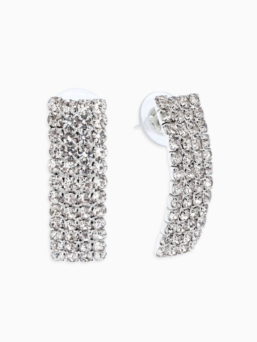 • Серьги со стразами "Прямоугольник" 30*9мм, цвет белый в серебре