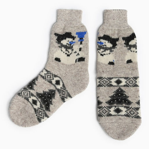 • Носки мужские шерстяные «Снеговик», цвет серый, размер 27